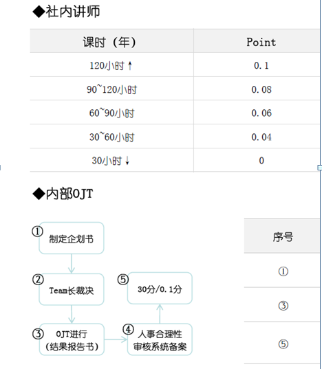 5.對(duì)企業(yè)內(nèi)部員工培訓(xùn)所花費(fèi)課時(shí)來(lái)制定了詳細(xì)的標(biāo)準(zhǔn),只有對(duì)本部分員工起到良好的傳幫帶作用才能做為一個(gè)優(yōu)秀的領(lǐng)導(dǎo)者,不然你升上去了,你留的空缺怎么辦,如果想升職,你就必須帶出接替你崗位的員工,把你的知識(shí)點(diǎn)傳授下去,我們看看該企業(yè)的員工所花費(fèi)的培訓(xùn)工時(shí)是如何為晉升的考核指標(biāo)的: